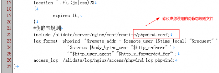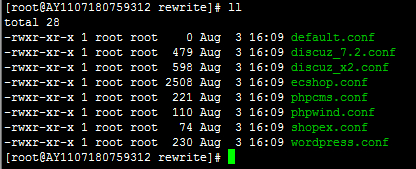 首先确认环境是不是按照《Linux一键安装web环境全攻略》来配置的。若不是的话,先配置好环境,若已经配置好,就请看下面 先进入到nginx的配置文件目录 输入以下命令 cd /alidata/server/nginx/conf/rewrite 再输入 ll 看看是否像下面截图的一样 这些就是伪静态规则文件。我们打开phpwind.conf看看。 我们已在rewrtie目录下配置了常见程序的伪静态规则,您可直接调用。 若没有就按照 程序名.conf的命名方式新建一个配置文件 配置文件搞清楚了,你可能会说好像网站伪静态还是没效果啊。别着急,因为伪静态规则是需要被网站配置文件调用才行的。 输入以下命令 cd /alidata/server/nginx/conf/vhosts 进入到网站配置目录 关于如何网站添加可以先学习下这篇文章《手把手教你nginx下如何增加网站》,这篇文章的链接:http://bbs.aliyun.com/read.php?spm=5176.775973947.0.0.Js0RJb&tid=3189 打开配置文件 修改好伪静态调用文件 下面测试下我们配置的文件是否正确吧 输入 /alidata/server/nginx/sbin/nginx -t 看到了么 nginx: the configuration file /alidata/server/nginx/conf/nginx.conf syntax is ok nginx: configuration file /alidata/server/nginx/conf/nginx.conf test is successful 如果出现以上两句话就说明配置成功了。下面重启下nginx /alidata/server/nginx/sbin/nginx -s reload 恭喜您,伪静态配置完成!