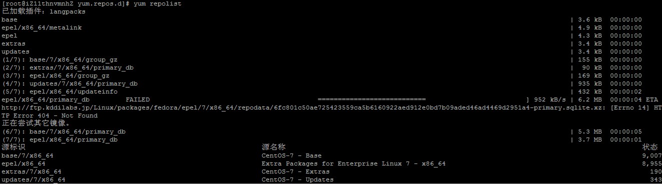 使用centos7.0安装mysql报错,如下所示: 原因是阿里云提供的一键安装包配置环境,会更新为阿里云的yum源,切换到CentOS的官方yum就可以了 编辑yum源文件/etc/yum.repos.d/epel.repo,将内容修改成下面的内容 [epel] name=Extra Packages for Enterprise Linux 7 - $basearch #baseurl=http://download.fedoraproject.org/pub/epel/7/$basearch mirrorlist=https://mirrors.fedoraproject.org/metalink?repo=epel-7&arch=$basearch failovermethod=priority enabled=1 gpgcheck=0 gpgkey=file:///etc/pki/rpm-gpg/RPM-GPG-KEY-EPEL-7 [epel-debuginfo] name=Extra Packages for Enterprise Linux 7 - $basearch - Debug #baseurl=http://download.fedoraproject.org/pub/epel/7/$basearch/debug mirrorlist=https://mirrors.fedoraproject.org/metalink?repo=epel-debug-7&arch=$basearch failovermethod=priority enabled=0 gpgkey=file:///etc/pki/rpm-gpg/RPM-GPG-KEY-EPEL-7 gpgcheck=1 [epel-source] name=Extra Packages for Enterprise Linux 7 - $basearch - Source #baseurl=http://download.fedoraproject.org/pub/epel/7/SRPMS mirrorlist=https://mirrors.fedoraproject.org/metalink?repo=epel-source-7&arch=$basearch failovermethod=priority enabled=0 gpgkey=file:///etc/pki/rpm-gpg/RPM-GPG-KEY-EPEL-7 gpgcheck=1 然后:# yum makecache 执行完之后检查下yum repolist 然后执行yum install mysql就能够安装mysql了