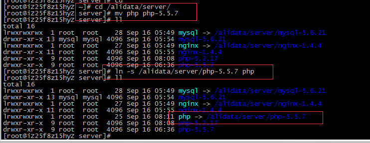 Linux系统,Nginx的web环境,升级php版本。 教程以阿里云官网云市场中的“阿里云linux一键安装web环境”,安装的环境为例。 1、一键安装包安装的php版本是5.2.17,环境是Nginx+php 2、环境都安装在/alidata/server/下面。 3、升级php版本,就是再重新安装一个高版本的php。这个一键安装包,可以安装的php版本有5.2、5.3、5.4、5.5 可以利用一键安装包中的脚本,在安装一个5.5版本的php。 /etc/init.d/php-fpm stop 把已经运行的php停止。 cd /alidata/server/ 进入到环境安装目录 unlink php 把已经安装配置好的php软链接取消。 进入到一键安装包的安装目录中,用php安装脚本,重新安装一个php。 cd /root/sh-1.4.4/ 进入目录 sh php/install_nginx_php-5.5.7.sh 执行php5.5的安装脚本(脚本名称或版本号可能变化,以实际查看到的为准)。 执行完脚本后,就开始自动编译安装了,需稍等一下,等待安装完成。 安装完成后,可在一键安装包的目录中看到,多了一个php5.5的软件包。 配置刚安装好的php5.5.7 cd /alidata/server/ mv php php-5.5.7 ln -s /alidata/server/php-5.2.17 php 修改好后,启动php。 /etc/init.d/php-fpm start 写个phpinfo的测试页面访问看下,php的版本是5.5.7了。
