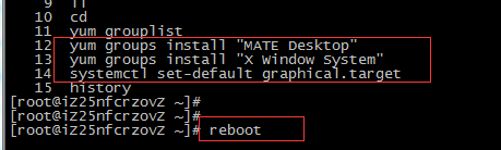 ECS Centos 7 系统安装图形化桌面 阿里云官网默认的Linux Centos7系统镜像,都是无安装桌面环境的,用户若要使用桌面,需自己在服务器上安装。 本教程以MATE桌面安装为例,如下所示: 1、登录服务器,执行命令安装桌面环境。 先安装MATE Desktop yum groups install "MATE Desktop" 安装好MATE Desktop 后,再安装X Window System。 yum groups install "X Window System" 设置服务器默认启动桌面 systemctl set-default graphical.target 安装完成后,执行命令重启服务器,在ECS服务器控制台,使用管理终端登陆服务器桌面。 reboot 安装命令记录,如下图所示: 2、在ECS控制台,用管理终端登录服务器,查看安装好的桌面。 输入管理终端密码后,进入到服务器系统登录界面,用root密码登录服务器。