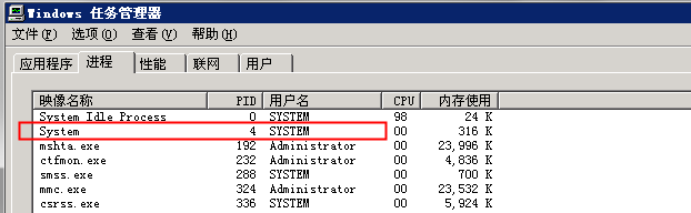 ECS Winows系统服务器web服务80端口监听异常 远程桌面连接登录Windows系统服务器后,查看web服务没有运行,运行下输入cmd进入命令提示符,如下图所示: 然后输入命令netstat -ano查看系统80端口显示是PID 4占用,如下图所示: 打开Windows任务管理器,点击查看,选择列: 然后勾选pid进程标示符,如下图所示: 查看到PID 4是被system进程占用: 导致发生此问题的原因: 1、安装过Server-U 新版本默认会启动WEB管理。 2、安装过Visual Studio高版本,启用了WEB部署代理服务。 3、安装过SQL Server Reporting Services服务并启用了该服务。 解决办法: 将上述可能出现的服务停止并禁用就可以解决问题了。 如问题还未解决,请联系售后技术支持