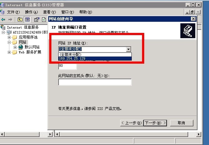 如何解决Windows2003 IIS建站时无法指定IP 问题描述: Windows 2003 IIS 上新建web站点的时候,无法选择指定的IP地址,如下图所示: 问题分析: 出现此问题是由于用户修改了计算机名,而修改后的计算机名没有同步到注册表中导致的。 解决方法: 打开注册表,找到HKEY_LOCAL_MACHINE\SYSTEM\ControlSet001\Control\ComputerName\ActiveComputerName 项,将里面的值跟“我的电脑”属性中的计算机名一致,然后重启系统以后再去设置就可以了。如下图所示: 如问题还未解决,请联系售后技术支持。