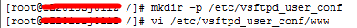 Linux系统服务器vsftp服务更改ftp账号 首先查看ftp账号www的家目录是/alidata/www 若需更改www账号的家目录,假设我们要更改为/123目录,首先我们要创建/123这个目录 然后编辑vsftp服务配置文件vsftpd.conf,在最后添加user_config_dir=/etc/vsftpd_user_conf,保存退出 在目录/etc下,创建这个目录vsftpd_user_conf,在该目录编辑一个文件,要以ftp账号名www命名 在文件里加入,local_root=/123,保存退出 执行命令service vsftpd restart或者/etc/init.d/vsftpd restart,重启vsftpd服务,使其生效 我们测试一下,在/123目录下创建个文件test.txt文件 然后通过flashfxp连接ftp查看下,可在123目录下看到test.txt文件,表示更改www账号家目录成功