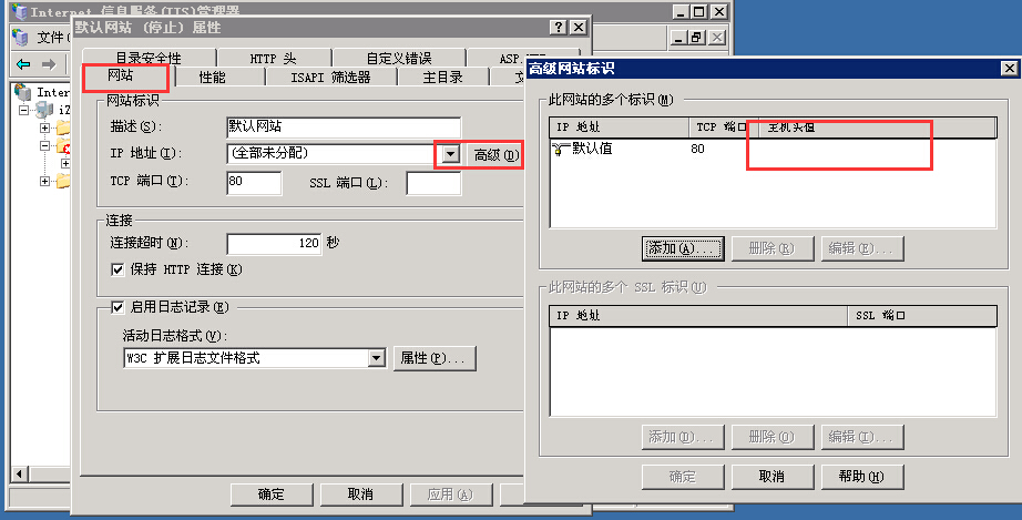 如何解决ECS Windows IIS访问报错Bad Request (Invalid Hostname) 报错Bad Request (Invalid Hostname)通常是由于Windows服务器的IIS中站点没有绑定域名,或者绑定有冲突所引起的。 检查处理方法如下所示: 首先依次打开【IIS】->【网站】->【属性】->【网站】->【高级】->【主机头值】(此值表示该网站绑定的域名),然后检查该值是否为被访问的域名值。如下图所示: 如问题还未解决,请联系售后技术支持。