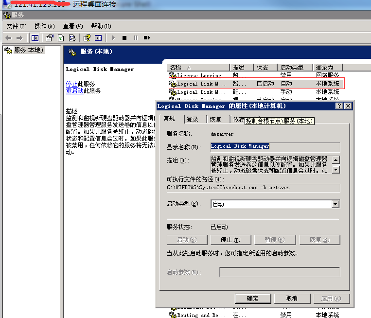 如何解决ECS Windows 2003购买数据盘后无法显示 问题描述: Windows 2003系统购买数据盘后,通过磁盘管理服务无法显示,提示“无法连接到逻辑磁盘管理服务”,如下图所示: 用户可以参考以下步骤来解决该问题: 1,首先找到启动磁盘管理服务项,然后右击【我的电脑】->【管理】->【服务和应用程序】->选择【服务】,在右边找到【Logical Disk Manager】和【Logical Disk Manager Administrative Service】,然后检查此两项服务是否被禁用,如果被禁用,请选择启动。如下图所示: 2,然后右击【我的电脑】->【管理】->【事件查看器】->【系统】->找到【错误】(错误发生时间要和打开磁盘管理时的时间大概一致), 双击查看日志信息, 然后找到发生错误的服务项, 在服务管理(上面第一步)中启动发生错误的服务,或者查看服务的属性, 启动此服务所依赖的服务。如下图所示: 如问题还未解决,请联系售后技术支持。
