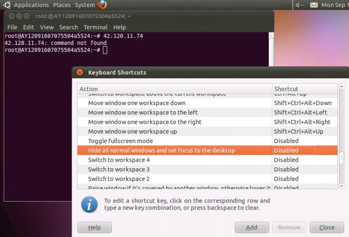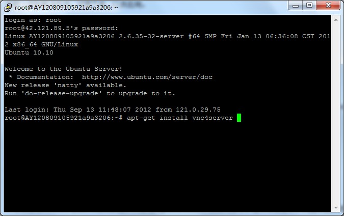 注意: 若在安装中部分软件不能安装成功,说明软件源中缺包,先尝试使用命令#apt-get update更新软件源后尝试安装。若仍然不行,需更换软件源。更换步骤: 1)输入命令#cp /etc/apt/sources.list /etc/apt/sources.list_backup 2)输入命令#vi /etc/apt/sources.list 3)添加其他软件源(推荐使用163、中科大、上海交大等速度较快的国内源) 4)保存并关闭窗口 5)输入命令:#apt-get update 开始安装 用root账户名密码登陆后 1、在ubuntu上安装vncserver,命令:# apt-get install vnc4server 2、开启vnc服务,输入命令:#vncserver 首次启动会要求设置密码,后面可以使用vncpasswd修改; 看到 New ‘****:1 (****)’ desktop is ****:1 (****代表主机名)即表示启动vnc成功,在主目录下产生一个.vnc目录; 3、在客户端下载“vnc客户端”软件,进行链接 在服务器栏输入:ip:1 输入用户名密码信息后,可以看到vnc连接页面 但是,这个页面好像不是我们想要的图形化界面。vncserver默认使用的窗口管理器是twm,这是一个很简陋的窗口管理器,下面我们把桌面改成GNOME或KDE。 4、 备份原有xstartup文件: #cp ~/.vnc/xstartup ~/.vnc/xstartup.bak 下面我们需要修改vnc启动文件,使用命令:#vi ~/.vnc/xstartup 打开后如下图所示 我们需要把上图中“x-window-manager &”这一行注释掉,然后在下面加入一行“gnome-session &”,或者是“startkde &”,分别启动GNOME桌面和KDE桌面。这里我们安装的是GNOME桌面。修改后如下图所示:(具体修改步骤:打开文件后,点击“insert”按钮,这时就可以输入了,在“x-window-manager &”前加“#”,然后回车输入“gnome-session &”,然后点击“Esc ”退出编辑模式,输入“:wq!”保存修改即可) 5、这时我们需要杀掉原桌面进程,输入命令:# vncserver -kill :1//这里的:1是桌面号 再次输入: #vncserver :1生成新的会话 6、下面我们开始安装gnome桌面环境 这里的安装有些慢,需要您耐心等待下。 1)安装x-windows的基础 :#sudo apt-get install x-window-system-core 2)安装登录管理器:#sudo apt-get install gdm (还可以为kdm/xdm) 3)安装Ubuntu的桌面:#sudo apt-get install ubuntu-desktop(还可以为Kubunut-desktop/ Xubuntu-desktop ) 另外: 安装命令:apt-get install gnome-core可以安装GNOME的一些基础。apt-get install firefox/gaim/xmms可以安装 Firefox 浏览器、Gaim 聊天程序、XMMS 音乐播放器。您可以按照自己的喜好来安装。 7、下面我们重复步骤5,, 输入命令:# vncserver -kill :1杀掉原桌面进程, 再次输入:#vncserver :1生成新的会话。然后使用vnc客户端连接,就可以看到图形化界面,如图: 注意:ubuntu10.10操作系统,安装后测试快捷键D无法正常使用,输入d时会使终端桌面显示、消失。这是因为快捷点冲突造成的(ubuntu 12.04无此问题)。 解决此问题,请按照以下步骤: 1)System->Preferences->Keyboard Shortcuts 找到系统快捷键设置菜单 2)打开快捷键设置对话框,并找到如下所示的条目,准备设置新的快捷键。\ 3) 输入“Backspace”键,将这个快捷键Disable。 4) 输入命令:# vncserver -kill :1杀掉原桌面进程, 再次输入:#vncserver :1生成新的会话。 5)编辑/etc/rc.local在文件最后一行加入: su root -c '/usr/bin/vncserver -name my-vnc-server -depth 16 -geometry 1280x800 :1'即可实现开机自启动 上一条: ASP木马在服务器上运行阻止