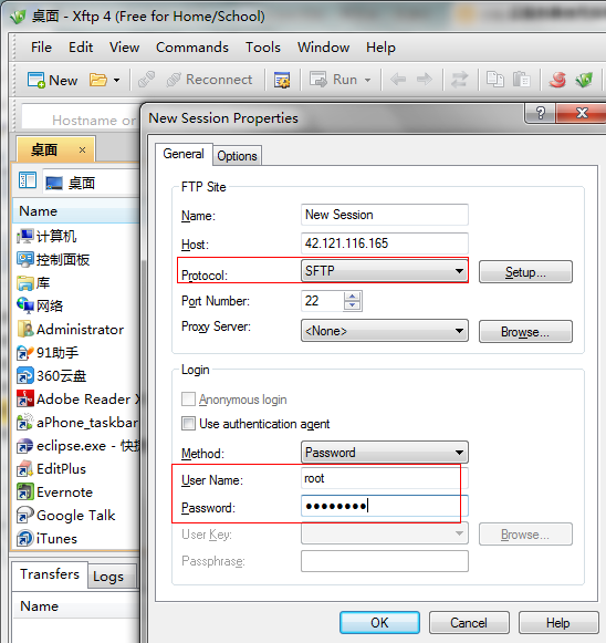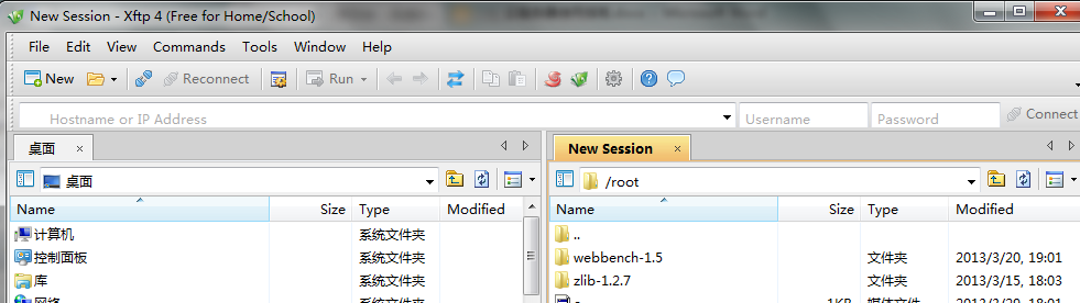 ssh服务自带了一个sftp服务,这个服务是基于ssh协议的ftp服务,但安全性更高于ftp。我们使用xshell软件、secureCRT或xftp都可连接,其中xftp是完全图形化操作的。 Xftp下载地址:http://www.onlinedown.net/soft/143.htm 在xftp里新建一个连接,注意协议需选择SFTP,然后依次填写IP、账户和密码并连接登录。 默认进入的是用户的 /root 目录下。此时就可将文件上传到服务器里了。需注意的是这时上传的文件的拥有者和拥有组都是当前登录的用户,若是上传网站文件就要注意了,后期也许仍然需调整这些文件的拥有者和拥有组。