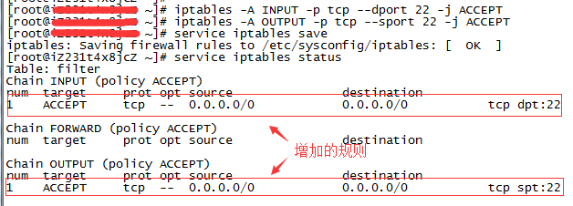 ECS CentOS系统的服务器,初始的时候没有开启防火墙,服务器对端口没有屏蔽,若用户想在服务器内只允许特定的端口可对外使用,可在服务器内设置iptables规则,来实现对端口的控制,具体的方法如下所示: 1、首次登录服务器,使用service iptables status 命令可查看到服务器的防火墙是关闭的状态,此时可使用 service iptables start 命令来启动防火墙,防火墙启动后,再次使用service iptables status可查看目前防火墙内是无规则的,端口全部不阻断。 2、之后将服务器常用端口添加到防火墙内,以远程端口22为例,命令如下所示: iptables -A INPUT -p tcp --dport 22 -j ACCEPT iptables -A OUTPUT -p tcp --sport 22 -j ACCEPT 命令解释: --dport 就是目标端口 当数据从外部进入服务器为目标端口 -A 指添加一条新的规则 -p 指定是什么协议 通常指的是tcp协议,也可以使用udp 反之 数据从服务器出去 则为数据源端口 使用 --sport -j 就是指定是 ACCEPT 接收或 DROP 不接收 添加后使用service iptables save命令保存下规则(注:若端口号添加错误,用户可以将命令中的-A参数修改为-D,其他不变,执行后可以删除之前添加的规则),之后使用service iptables restart重启下防火墙,使用service iptables status查看下规则,可以看到目前防火墙的出站和 入站规则中,22端口是放行的状态,如果用户需要开启其他的端口,可以按照此方法自行开通下,规则添加完需要手动保存下,之后重启下防火墙才能生效。 3、需放行的端口添加完毕后,输入下如下三条命令: iptables -P INPUT DROP iptables -P FORWARD DROP iptables -P OUTPUT DROP 这三条命令的作用是禁止全部入站出站行为,之后保存重启下防火墙,此时防火墙会屏蔽除了您开放的端口之外的其他全部端口。 上一条: WDCP的报错处理的两种类型 下一条: 查看Linux下默认的DNS的操作方法