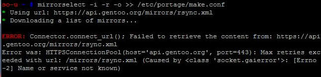 ECS Gentoo系统中mirrorselect获取内容失败提示“Name or service not known”错误的分析解决