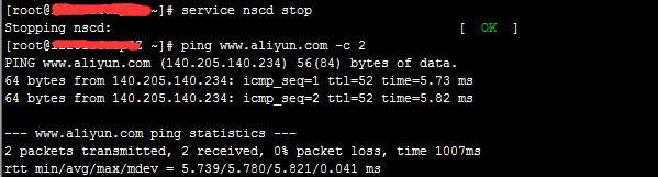 Linux系统内可ping通ip,但ping域名提示unknown host,可先检查iptables及服务器dns配置是不是正确,若没有问题的情况下,检查nscd服务,此种情况一般是因为DNS Cache导致,清理DNS Cache方法如下所示: 1.请检查nscd服务是不是开启状态: 2.关闭nscd服务,然后再ping测试,恢复正常: