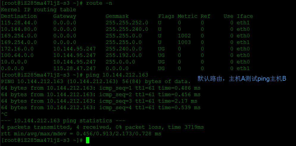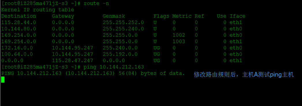 图1和图2的区别,图1比图2多了一条,10.0.0.0的路由规则,因此修改系统的默认路由规则也许会导致无法ping通内网。
