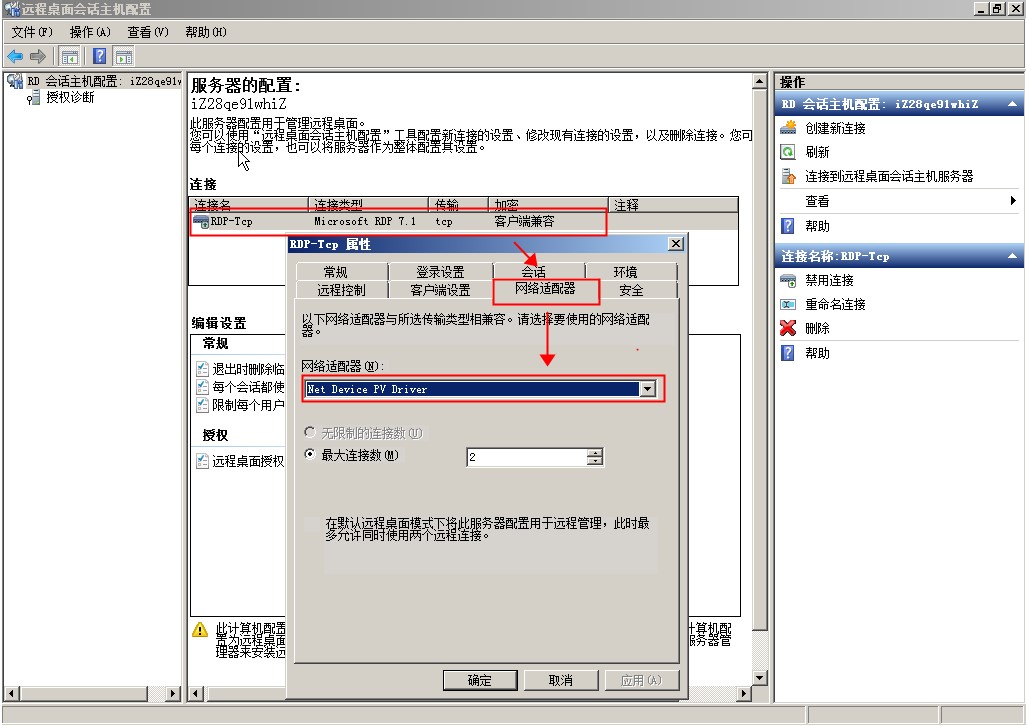 如何解决ECS Windows远程端口无法监听公网地址 问题现象: ECS Windows远程端口无法监听公网地址,如下图所示: 远程服务正常,如下图所示: 公网网卡正常,网络正常,如下图所示: 问题原因: 远程桌面会话主机配置中的RDP-Tcp链接配置-->网络适配器设置中只指定了内网网卡,如下图所示: 解决办法: 开始菜单-->管理工具-->远程桌面服务-->远程桌面会话主机配置-->如下图配置中将网络适配器选择所有,如下图所示: 重启远程桌面服务 查看3389端口监听情况,如下图所示恢复正常就可以了: 如果问题还未能解决,请联系售后技术支持。