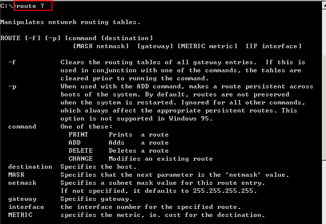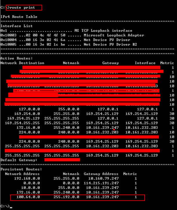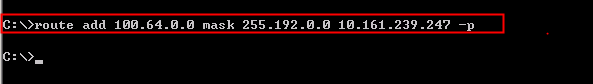 ECS Windows服务器如何添加静态路由 1、用户首先在运行里面输入cmd,调出cmd命令框,如下图所示: 2、然后我们通过“route ?”命令 查看route命令的帮助及语法,如下图所示: 3、我们这边添加一条100.64.0.0/10 到内网网关10.161.239.247的路由,如下图所示: 上面的命令是 route add 目标地址段 mask 网络掩码 网关 -p 注意:-p参数是为了让路由永久生效,如果不加这个参数,就是当前内存生效,重启服务器后该路由就没有了。 4、我们可以通过route print 命令查看当前服务器的路由表,如下图所示: 5、可以通过 “route delete 目的网段网络地址”删除添加的静态路由,如下图所示: 如果问题还未能解决,请联系售后技术支持。