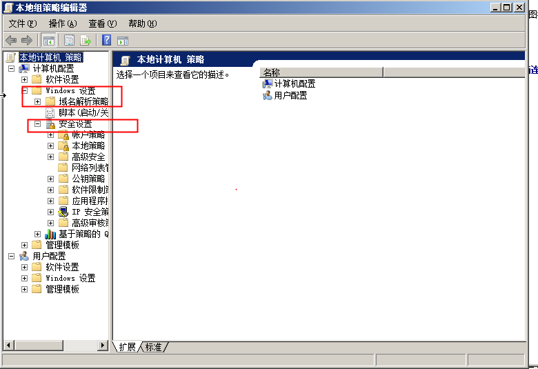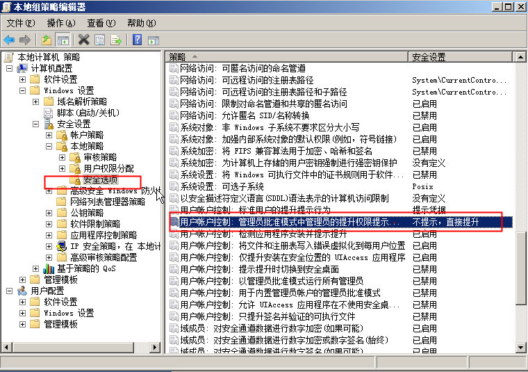 2、依次打开Windows设置—安全设置—安全选项。如下图所示: