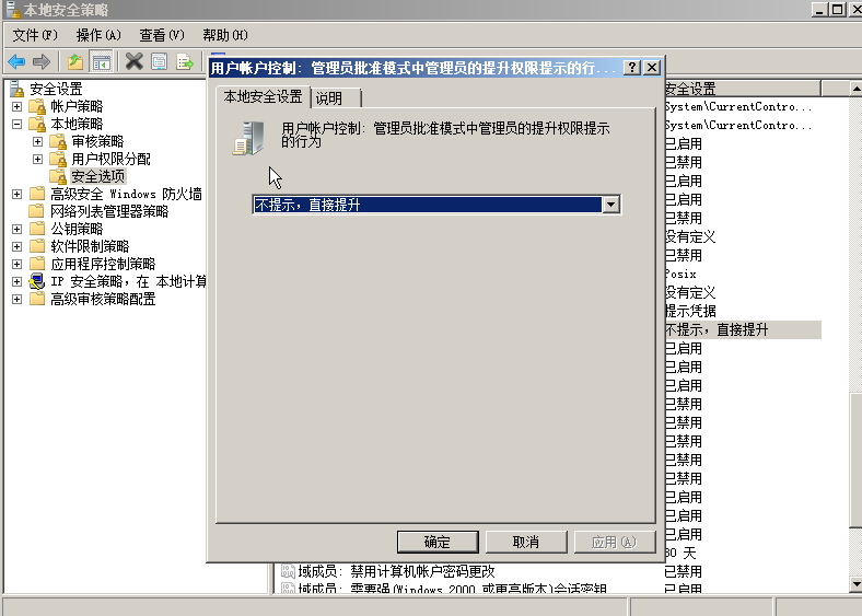 3、然后找到用户账户控制,如下方图所示,把用户账户控制改为不显示,直接提升就可以了。