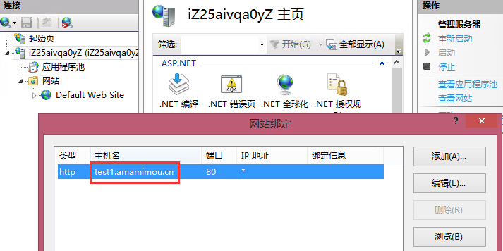 ECS Windows服务器IIS网站设置禁止通过IP访问的具体方法 用户在IIS中配置网站进行主机头绑定时,很多都是在原有空主机头的基础上添加自己的域名,IIS会因为空主机头的存在,通过IP直接访问到服务器中IIS的默认站点,如果有其他域名解析到服务器的IP,就可以访问到这个网站了。 比如说:IIS中配置一个站点,在空主机头的基础上再绑定一个域名test1.amamimou.cn,配置如下图所示: 这种配置下通过服务器的公网IP和域名都可以访问到网站,如下图所示: 此时如果有其他恶意域名解析到了服务器的IP,比如test2.amamimou.cn,在IIS中未绑定该主机头的情况下也可以访问成功,如下图所示: 为了避免这种问题的出现,用户可以将空主机头删除,只保留自己需要的域名。在这个测试案例中,只需要保留test1.amamimou.cn。如下图所示: 此时即使恶意域名test2解析到用户服务器的IP,也就让它无法正常访问到了,如下图所示: