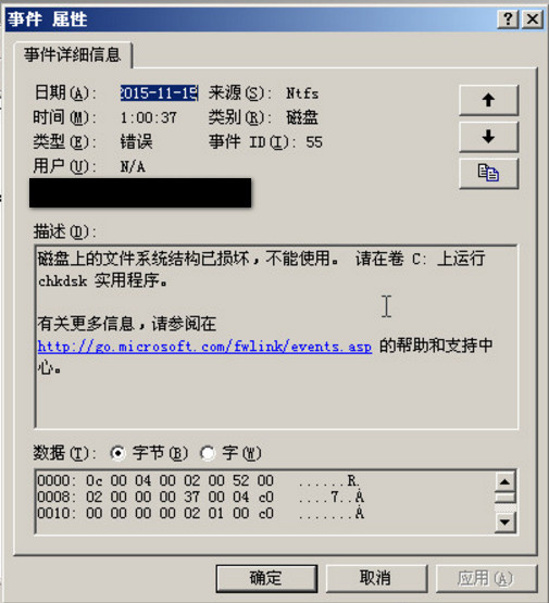 如何解决ECS Windows服务器磁盘文件系统损坏 ECS windows server 2003 R2系统不稳定,经常有无法远程和服务器中的网站不能访问的情况出现。 通过ECS控制台中的监控可见系统的性能,包括CPU,外网带宽没有瓶颈,进入系统后通过系统的“任务管理器中”也可以查看到内存和磁盘IO也是没有瓶颈的。 用户点击电脑左下角的开始》运行》输入“cmd”》输入“eventvwr”,结束运行后,打开系统的日志管理器,查看系统日志有报错,如下图所示: 就可以看到系统的C盘文件系统结果已经损坏,需要修复。 建议用户先对系统盘创建快照: 在您需要为磁盘创建快照时,您需要自己进行如下操作: 1.首先进入ECS控制台; 2.然后选择磁盘管理; 3.再选择需要创建快照的磁盘,注意:这里不能多选,一次只能选择一块磁盘; 4.然后选择创建快照; 5.根据提示填写快照名称,选择确定就可以了。 注意: 对一块磁盘进行第一次创建快照时,会花费比较长的时间,因为第一个快照是全量快照; 对已经有快照的磁盘,再次进行创建快照,相对来说会比较快,但是时间长短取决于和上一个快照之间的数据变化量,变化量越大,时间就会越长; 对磁盘创建快照,会轻微降低磁盘的性能,对您的直接影响是,您的业务在创建快照时,会出现短暂的瞬间的变慢,程度视您的数据变化多少而定。请避免在您的业务高峰期进行快照创建。 修复的方法如下所示: 点击电脑左下角的开始》运行》输入“cmd”》输入: cd \ chkdsk 如下图所示: 然后系统会进行文件的校验。如下图所示: 在这里可以看到检测后的结果。如果提示检测到有错误需要修复,修复的命令如下: chkdsk /F,如下图所示: 因为系统目前在运行中,可以输入Y,让系统下次重启时会自行进行检测就可以了。 如果问题还存在,请联系阿里云售后支持。
