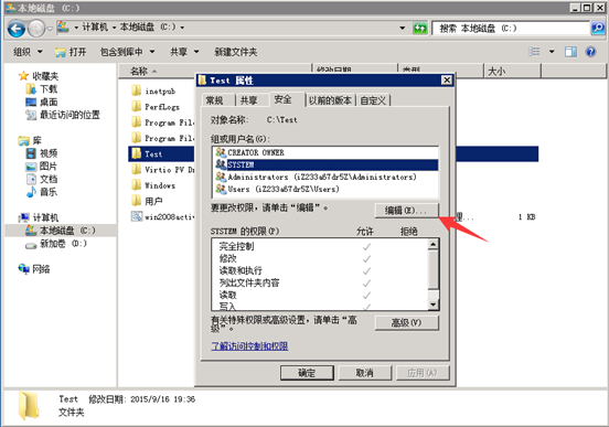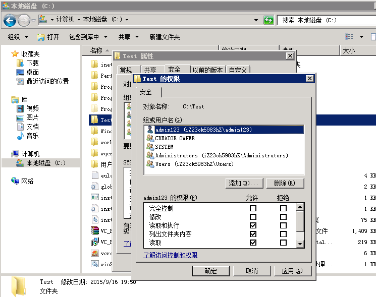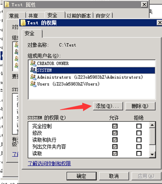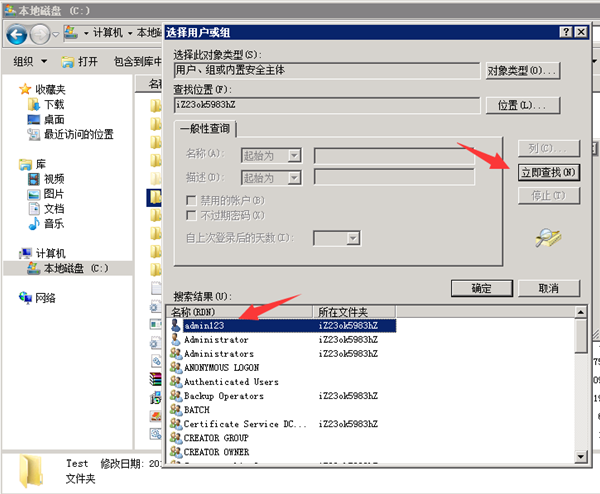Windows Server 2008 设定目录的权限的方法 Windows Server 2008的管理员可以依据安全性的需求,指定NTFS的权限给用户账户或组账户。通常只有系统管理员、文件或 目录的所有者或对文件、目录拥有完全控制权限的使用者才可以更改NTFS文件或目录的权限。指定标准权限时可以针对每个权限,设置其为“允许”或“拒绝”执行该项权限。 Windows Server 2008中,目录的标准权限设置步骤如下所示: 1. 首先选择“开始”-> “计算机”,进入磁盘并选择您要设置权限的目录,本例以C盘的Test目录举例说明。 2. 然后选择C:\Test目录后,单击右键,在弹出的快捷菜单中选择“属性”命令,接着在“Test属性”对话框中选择“安全”选项卡。如下图所示: 3. 然后单击“编辑”按钮,并在“Test的权限”对话框中单击“添加”按钮。如下图所示: 4. 在“选择用户或组”窗口中,单击“高级”按钮,再单击“立即查找”按钮。如下图所示: 然后在“搜索结果”列表框中选择授权的使用者或用户组,本例以选择管理员账号“admin123”为例,然后单击“确定”按钮,再单击“确定”按钮。如下图所示: 5. 在“Test的权限”对话框中的“组或用户名”列表框中,确认所新增的账号或用户组有被添加,并为该账号或用户组选择必需 允许或拒绝权限,然后单击“确定”按钮,在“Test属性”对话框中,再单击“确定”按钮来完成目录权限的设置。如下图所示: 如果问题还未能解决,请联系售后技术支持。