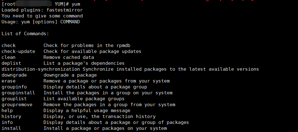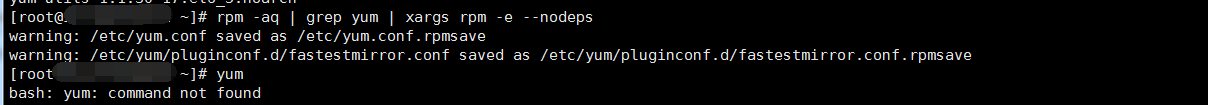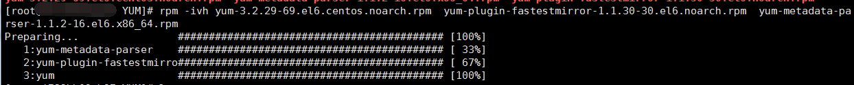 yum卸载: 从上图中可看到已成功卸载,之后使用命令 whereis yum 搜索剩余的残留目录,进行删除 yum下载(centos6): wget http://mirror.centos.org/centos-6/6/os/x86_64/Packages/yum-3.2.29-69.el6.centos.noarch.rpm wget http://mirror.centos.org/centos-6/6/os/x86_64/Packages/yum-metadata-parser-1.1.2-16.el6.x86_64.rpm wget http://mirror.centos.org/centos-6/6/os/x86_64/Packages/yum-plugin-fastestmirror-1.1.30-30.el6.noarch.rpm yum安装(centos6): rpm -ivh yum-3.2.29-69.el6.centos.noarch.rpm yum-plugin-fastestmirror-1.1.30-30.el6.noarch.rpm yum-metadata-parser-1.1.2-16.el6.x86_64.rpm 安装详情如下图所示: 可看到已安装成功:
