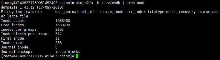 ECS Linux的inode节点中,记录了文件的类型、权限、所有者、大小、文件连接的数目、创建时间与更新时间等重要信息,还有一个比较重要的内容就是指向数据块的指针。一般情况下不需要特殊配置,若存放文件很多,需要配置。有时磁盘空间有剩余但不能存放文件,也许是由于inode节点数量不够了,使用命令:df -i 可查inode使用情况。 若需调整inode节点的数量需进行以下几步: 1.卸载系统文件: umount /home 2.建立文件系统,指定inode节点数: mkfs.ext3 /dev/xvdb -N 1638400 3.修改fstab文件: vim /etc/fstab 4.查看修改后的inode节点数: dumpe2fs -h /dev/xvdb | grep node 请注意:执行此操作会删除数据盘上的一切内容,请一定保证业务正常运行的前提下,做好快照、数据备份,再执行此操作。