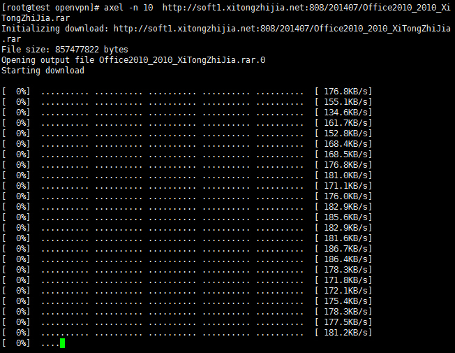 Axel是Linux中一种HTTP/FTP高速下载工具,支持多线程下载,适合多线程下载提高下载速度,比如在国内服务器中下载国外的一些软件,用axel就比wget快。 CentOS安装Axel: 目前yum源上没有Axel,可到http://pkgs.repoforge.org/axel/下载rpm包安装。 32位CentOS执行下面命令进行下载安装: wget -c http://pkgs.repoforge.org/axel/axel-2.4-1.el5.rf.i386.rpm rpm -ivh axel-2.4-1.el5.rf.i386.rpm 64位CentOS执行下面命令进行下载安装: wget -c http://pkgs.repoforge.org/axel/axel-2.4-1.el5.rf.x86_64.rpm rpm -ivh axel-2.4-1.el5.rf.x86_64.rpm Axel命令使用方法: axel 参数文件下载地址 可选参数: -n 指定线程数 -o 指定另存为目录 -q 静默模式 -s 指定每秒的最大比特数 如下载Office安装包指定100个线程:axel -n 100 -o http://soft1.xitongzhijia.net:808/201407/Office2010_2010_XiTongZhiJia.rar 下载速速明显比wget速度要理想 上一条: ECS Linux下shm设备的安全设定 下一条: 安装redis启动报错的分析解决