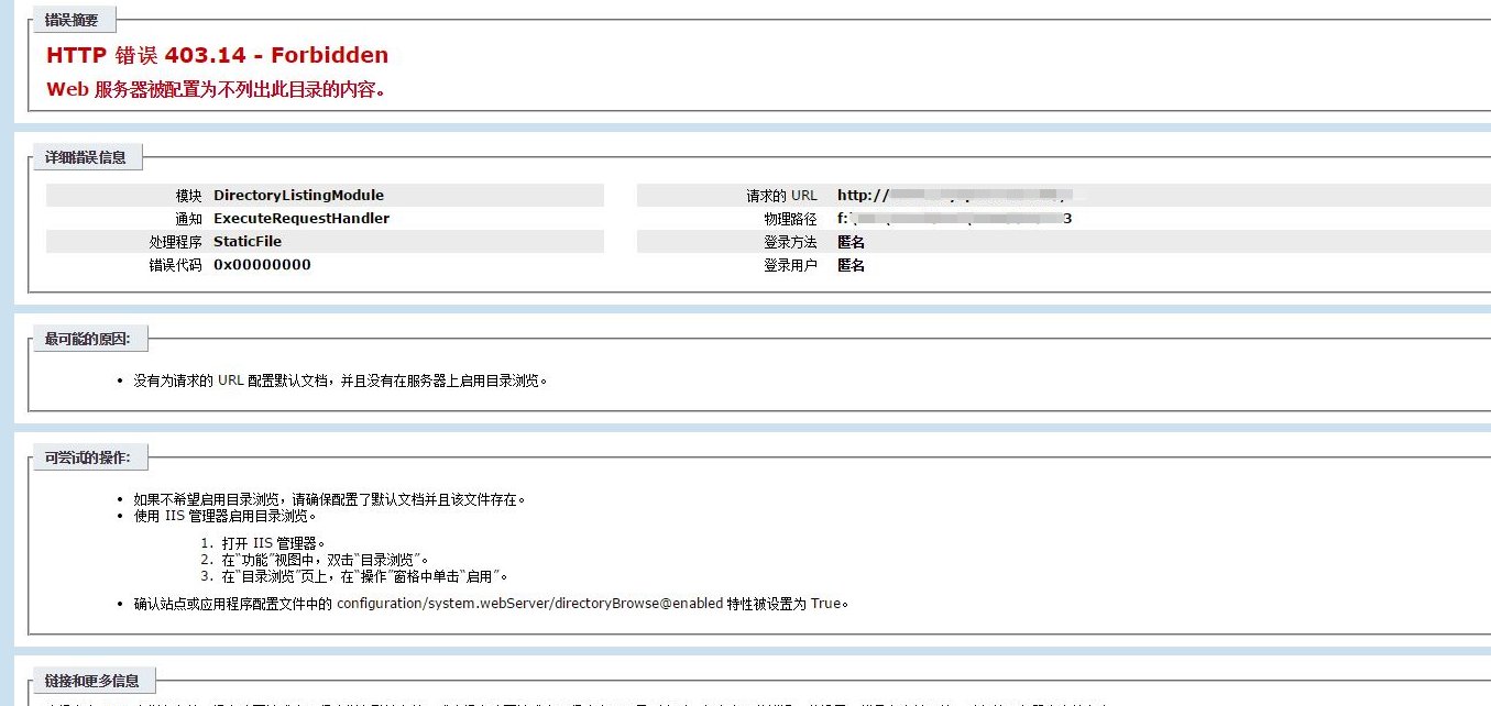 如何解决HTTP错误 403.14-Forbidden Web 服务器被配置为不列出此目录的内容