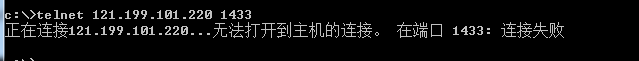 如何排查ECS无法登录服务器的SQL Server 常用的无法登录SQL Server的排查方法如下所示: 一、网络连接测试。 键盘输入Win+R打开【运行】输入cmd回车,然后打开命令窗口,输入命令ping后边加SQL Server服务器的ip地址,回车进行测试。 ping是测试本地电脑和SQL Server服务器的网络连接是否正常,如果ping不通,用户需要检查网络线路。如下图所示: 二、SQL Server端口连接测试。 键盘输入Win+R打开【运行】输入cmd回车,然后打开命令窗口,输入命令telnet 服务器IP端口,回车进行测试。 例如:telnet 121.199.101.220 1433,如下图所示: 通常端口是1433,因为1433是SQL Server的对于Tcp/IP的默认侦听端口。如果telnet测试提示“……连接失败",就说明本地连接不通SQL Server服务器的1433端口。遇到这种情况就需要检查SQL Server服务的可用性,服务器上是否设置防火墙等情况。 防火墙的文档可以参考:http://help.aliyun.com/knowledge_detail.htm?spm=5176.7114037.1996646101.1.Cqy7fz&categoryId=8314868&knowledgeId=5980317&pos=1 如果问题还未能解决,请联系售后技术支持。