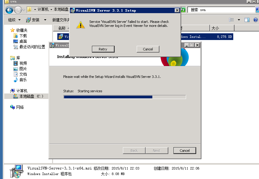 如何解决ECS Windows系统安装VisualSVN-Server-3.3.1-x64时提示启动服务失败