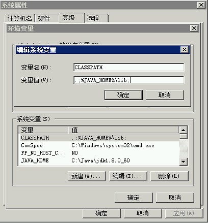 阿里云ECS Windows JDK的安装与配置 本文主要介绍Windows Server 2008系统下JDK的安装与配置 环境: Windows Server 2008 JDK: jdk_8u60_windows_i586_V8.0.600.27.1440040557.exe 1. 首先下载JDK: 到Oracle官方网站下载:https://www.oracle.com/downloads/index.html 选择合适的版本下载。 2. 然后点击安装程序,进行JDK安装,如下图所示: 选择JDK的安装路径,如下图所示: 选择JRE的安装路径,如下图所示: 3. 到此JDK就安装完成了, 4. 配置环境变量: 在系统变量中需要新建2个变量,大小写不区分,如果存在相同变量名,请用户使用编辑修改变量值。 1)JAVA_HOME,变量值为:C:\Java\jdk1.8.0_60(具体请根据你安装的JDK路径而定) 2)CLASSPATH,变量值为.;%JAVA_HOME%\lib;如下图所示: 3)然后在已有的Path变量后添加如下内容 ;%JAVA_HOME%\bin;%JAVA_HOME%/jre/bin;如下图所示: 到此就完成了JDK的环境配置,然后请在cmd命令行界面下输入java -version测试是否安装成功。如下图所示: 如果问题还存在,请联系阿里云售后支持。 上一条: 如何解决Remote Registry 服务被禁用导致ECS Windows安装DFS失败 下一条: 如何解决ECS Windows2008 R2更新补丁报“8000FFFFwindows update 遇到未知错误”