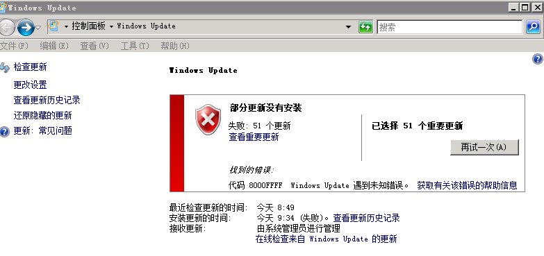 如何解决ECS Windows2008 R2更新补丁报“8000FFFFwindows update 遇到未知错误”
