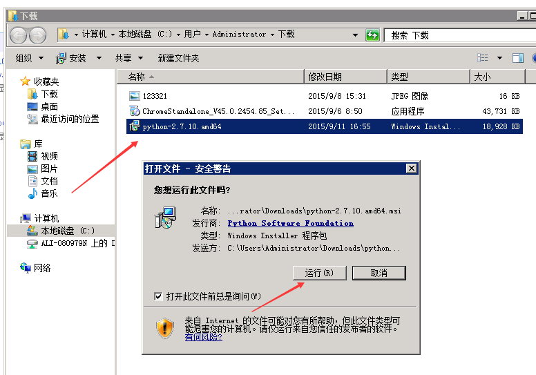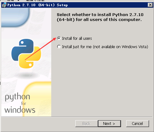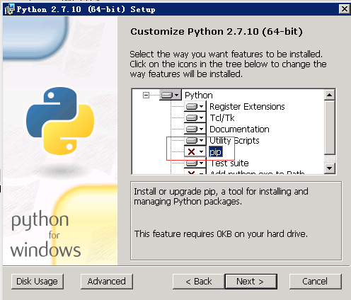 阿里云ECS Windows Server2008 安装Python的步骤 在Windows server2008上安装Python 1、访问Python的官网下载安装包 https://www.python.org/downloads/windows/ 选择需要安装的Python版本,64位的系统,需要安装64位版本的。 以下安装以Python2.7.10为例,如下图所示: 2、下载完安装包后,点击进行安装。如下图所示: 3、给服务器的所有用户安装,如下图所示: 4、这里可以选择Python的安装路径,默认是在C盘。如下图所示: 5、选择安装的功能模块,如下图所示: 6、最后安装时,如果提示以下错误,不能正常进行安装,参考下一步进行操作。如下图所示: 7、再重新安装一次,在这个选择界面,把pip这个模块取消,然后执行安装就可以了。如下图所示: 如问题还未解决,请联系售后技术支持 上一条: ECS Linux服务器利用Nethogs监控每个进程的网络使用情况 下一条: ECS apt-get安装软件或更新时提示apt-get 的 Segmentation faultsts的解决办法