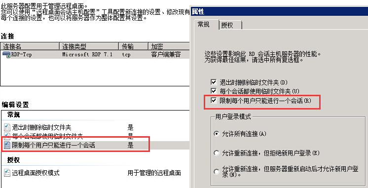 ECS Windows系统多人使用相同账号同时远程登陆的具体方法 如果需要多人同时使用同一账号登录ECS Windows的话,就可进行如下设置: 1、首先点击【开始】->【管理工具】->【远程桌面服务】->【远程桌面会话主机配置】,如下图所示: 2、如果已经勾选了【限制每个用户只能进行一个会话】,则同账号在同一时间点只能存在一个会话连接,如果用户取消勾选,那么同一个账号可以同时保持不同会话进行连接。如下图所示: 如问题还未解决,请联系售后技术支持。