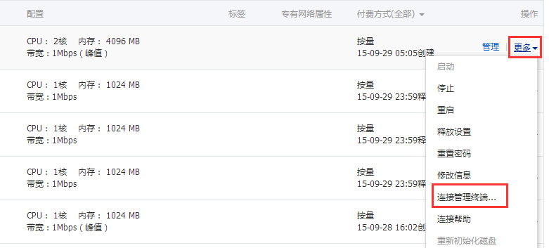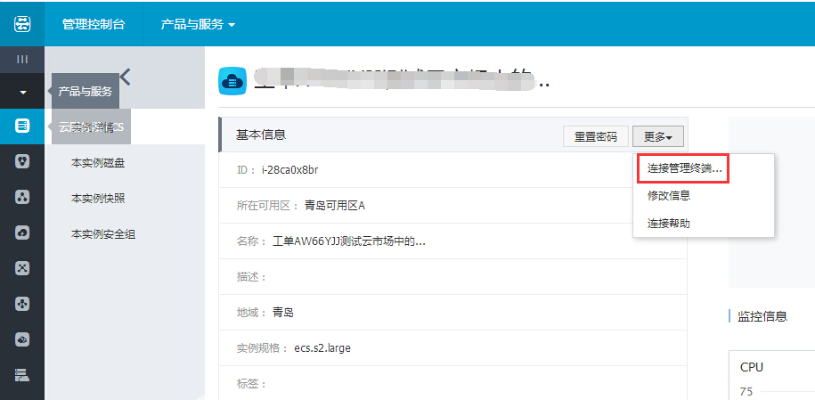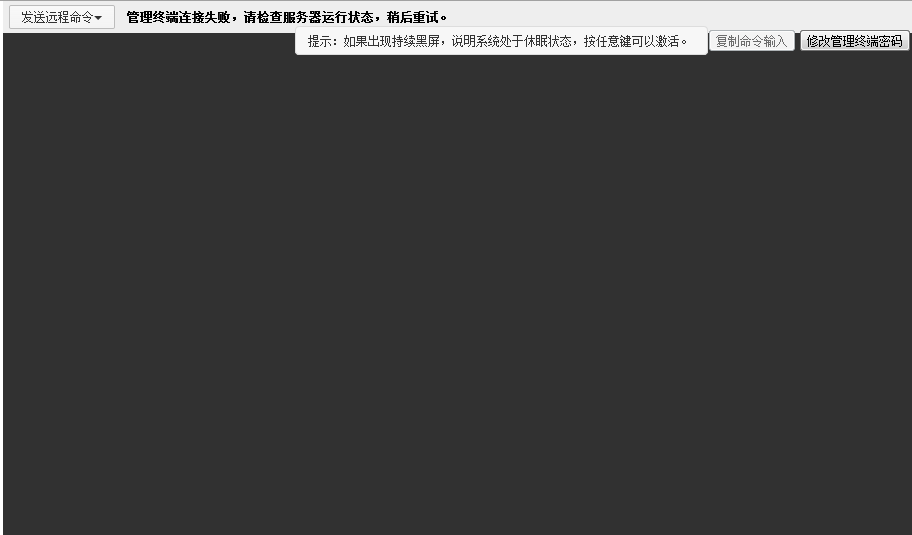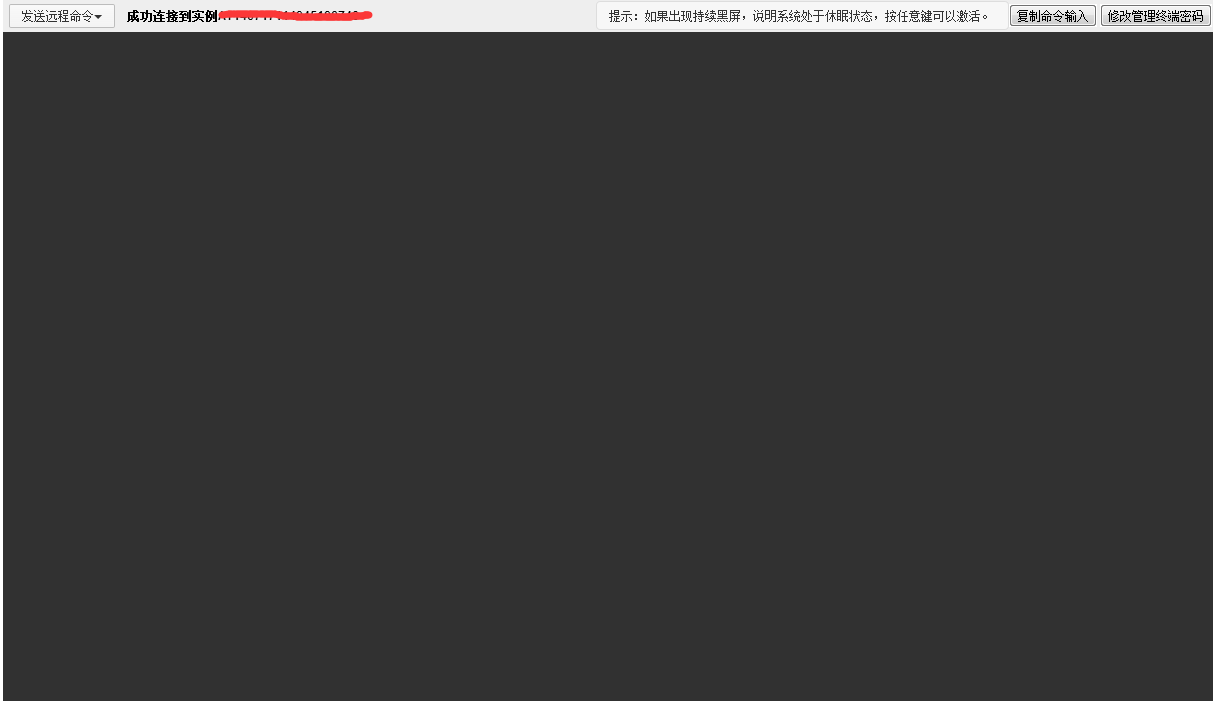 如何解决ECS控制台无法连接管理终端 ECS服务器出现无法远程连接时,用户可以通过云服务器ECS,管理控制台中“更多操作”里的“连接管理终端“连接到服务器进行排查。 一、首先进入连接管理终端,连接管理终端(VNC)的入口有两个。 1、在阿里云管理控制台—【云服务器ECS】—【实例】—【更多】中,如下图所示: 2、另一个是在进入到ECS服务器管理页面中,如下图所示: 二、连接管理终端在使用中可能会遇到以下几个问题: 1、输入管理终端密码后提示“控制台管理终端连接失败,请检查服务器运行状态,稍后重试”,如下图所示: 这是由于之前修改了管理终端(VNC)的密码,但是没有通过控制台上的重启按钮,重新启动服务器使之生效。遇到这种情况,用户通过控制台的重启按钮,重启服务器后就可以正常登录了,重启按钮如下图所示: 2、在输入正确的管理终端(VNC)密码后,提示“成功连接到实例*******”,但是显示灰屏,如下图所示: 出现这个问题是由于浏览器兼容性问题导致,使用“Google Chrome浏览器”即可使之正常显示。 如问题还未解决,请联系售后技术支持。
