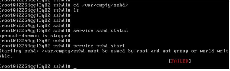ECS Linux启动sshd服务出现/var/empty/sshd无法访问的原因和解决