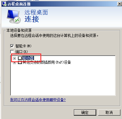 远程桌面连接服务器在服务器内显示本地磁盘的具体操作 远程桌面连接服务器在服务器内显示本地磁盘,具体操作步骤方法如下所示: 1、首先点击开始--运行--输入mstsc回车,打开远程桌面连接窗口,然后点击下方的"选项"。如下图所示: 2、然后点击本地资源--本地设备和资源,在下方点击“详细信息”按钮。如下图所示: 3、然后在弹出的窗口,勾选驱动器,点击“确定”保存。 如下图所示: 4、在远程连接到服务器后,就可以看到已经挂接成功的本地磁盘了,拷贝资源就非常方便了。如下图所示: 如问题还未解决,请联系售后技术支持。