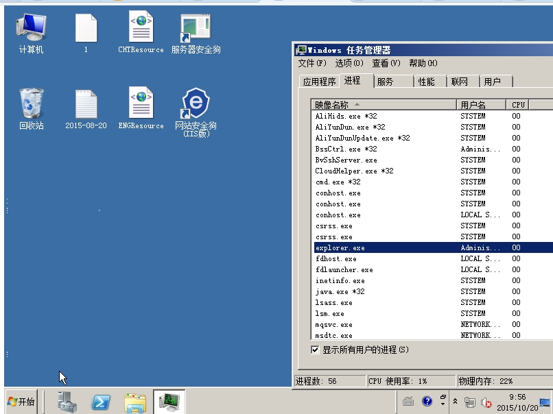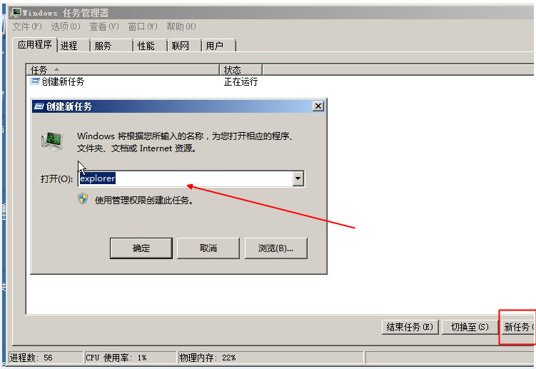 如何解决ECS Windows服务器登陆后桌面崩溃 问题描述: ECS Windows服务器,使用远程桌面和【连接管理终端】登陆服务器后,发现桌面进程崩溃,具体表现为:桌面图标丢失,点击鼠标右键无响应,按Windows键无响应。如下图所示: 问题分析: 出现该问题是由于Windows桌面进程explorer崩溃导致,用户通过任务管理器新建explorer进程就可以了。 解决方法: 1. 用户首先使用【连接管理终端】登陆服务器,然后发送Ctrl+Alt+Del键,在弹出的锁屏界面中,选择任务管理器。如下图所示: 2. 然后打开任务管理器,点击【应用程序】--【新任务】,在弹出的运行对话框中,输入命令 explorer,然后点击【确定】,如下图所示: 3. 点击任务管理器的【进程】选项卡,查找explorer进程是否存在,关闭任务管理器,然后验证桌面是否恢复就可以了。如下图所示: 如问题还未解决,请联系售后技术支持。