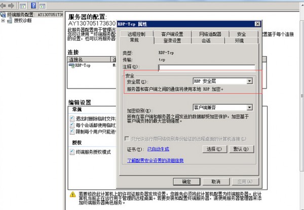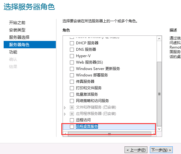 如何解决ECS Windows远程桌面出现报错由于没有远程桌面授权服务器可以提供许可证 用户使用远程桌面客户端连接Windows Server 2012服务器,输入正确的用户名和密码提交后,出现如下错误信息,无法正常远程连接: 由于没有远程桌面授权服务器可以提供许可证,远程会话会被中断。 登录服务器,【RD授权诊断程序】会出现如下错误信息,如下图所示: 出现该问题一般是由于在系统内部安装了【远程桌面会话主机】角色但是未配置正确的管理授权所导致的。 在正常情况下,Windows Server版服务器默认提供两个用户的免费远程桌面管理授权。 如果用户有更高的连接需求,那么需要配置【远程桌面会话主机】服务器角色,同时在购买和配置相应的授权后,用户才可以使用更多的远程桌面管理并发。 另一方面,在配置【远程桌面会话主机】角色后,会同时取消原有默认的2个免费连接授权。 所以,用户在没有正确配置相关授权的时候,会导致远程桌面无法连接,并出现上述错误提示。 解决的办法以下有三种: 第一种: 服务器管理器-终端服务配置-常规-安全层改为 RDP安全层,如下图所示: 第二种: 用户在配置【远程桌面会话主机】服务器后,在微软官网购买和配置相应的证书授权(相关操作方法可以参阅微软官方文档); 第三种: 删除【远程桌面会话主机】角色,使用默认的2个免费连接授权。 1). 服务器管理器-点击右上角的【删除角色】按钮,如下图所示: 2). 在向导第二步,取消勾选【远程桌面服务】,其它默认配置就可以了。 注意:操作完成后需要重启服务器生效。 如下图所示: 如问题还未解决,请联系售后技术支持。