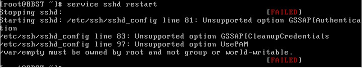 命令:chmod 644 /var/empty 回车确认后就可以正常启动,连接服务器。