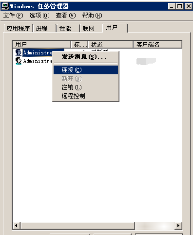 ECS Windows远程桌面中如何切换会话 Windows远程桌面支持多会话同时操作,但是在使用过程中经常会遇到要求切换会话的问题。 应用场景: 有多个人打开了不同的远程桌面,如果要想切换到另一个人的桌面会话,或由于某些软件只能在控制台会话(主会话)下进行,所以需要用户切换到主会话桌面。 切换会话: 登录到远程主机后,调出【任务管理器】,然后点击【用户】选项卡,用户列表中右击要切换到的会话,然后在快捷菜单中选择【连接】,进行会话切换。 注:此操作会中断原有用户连接,如果想注销该用户会话,选择注销就可以了。 如下图所示: 登录控制台会话: 首先点击【开始】菜单--【运行】,在弹出的【运行】对话框中执行带/console参数的命令启动远程桌面,示例: mstsc /v:192.168.0.126 /console 如下图所示: 如果问题还未能解决,请联系售后技术支持。