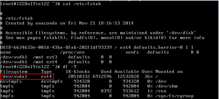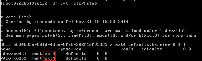 Linux CentOS 7系统SSH不能远程连接。 本地登陆服务器执行“ifconfig”命令,查看到服务器外网网卡没有启动,只有loopback网卡。 尝试启动网络服务的时候,系统报错: #/etc/init.d/network restart 发现xvdb1分区的ext3文件系统无法在当前系统上正常挂载。由此,初步定位是挂载磁盘文件系统出错导致网络服务及网卡启动异常。 查看/etc/fstab文件配置,发现/dev/xvdb1分区被挂载成了ext3文件系统。 执行“df -T”确认Linux默认挂载的文件系统为ext4: 至此,通过系统的报错提示和默认的磁盘文件系统分析,/dex/vxdb1使用ext4文件系统。 修改/etc/fstab文件后,再次尝试,文件系统可以正常挂载。 #cp -a /etc/fstab /etc/fatab.bak #备份当前的/etc/fstab文件 把: /dev/xvdb1 /mnt ext3 defaults 0 0 /dev/xvdb1 /mnt ext4 defaults 0 0 修改为: #/dev/xvdb1 /mnt ext3 defaults 0 0 #注释掉这行,让其不生效 /dev/xvdb1 /mnt ext4 defaults 0 0 重新挂载,并启动网卡: #mount -a #/etc/init.d/network restart #不再报错,已经可以正常启动 测试访问外网,服务器可正常Ping通淘宝域名,网络恢复正常。 客户端再次尝试SSH远程连接,恢复正常。