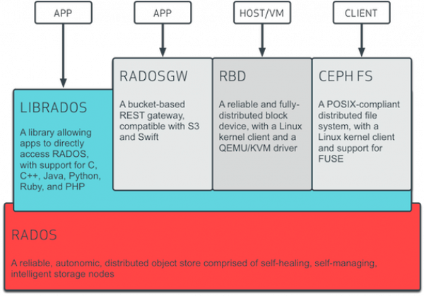 在OpenStack中,存储是非常重要的一块,但是因为其提供方式的不同,即使是专业的工程师也会感到十分困惑。OpenStack的存储主要分为三大类,一是对象存储服务,Swift解决的问题,二是块设备存储服务,在OpenStack里主要是提供给虚拟机的作为“硬盘”的存储,这里又分为本地块存储和分布式块存储,Cinder项目正在解决相关的问题;第三类,数据库存储服务,Databases as a Service(DBaaS), 对应AWS里面的RDC,目前是一个正在孵化的项目,Trove,前身是Rackspace开源出来的RedDwarf。 本文重点介绍块存储服务,UnitedStack OS的块存储是在OpenStack Cinder框架下开发的,开发过程中,我们对目前主流的块存储服务提供商和开源的块存储软件做了一个简要分析,希望能给从事块存储开发的工程师对于块存储一个全局的认识。 块存储,简单来说就是提供了块设备存储的接口。用户需把块存储卷附加到虚拟机(或者裸机)上后才可与其交互。这些卷都是持久的: 它们可被从运行实例上解除或重新附加而数据保持完整不变。 下面会先介绍常见的单机块设备工具来建立对块存储的初步印象。 单机块存储 首先一个硬盘是一个块设备,内核检测到硬盘然后在/dev/下会看到/dev/sda/。因为我们需利用一个硬盘来得到不同的分区来做不同的事,通过fdisk工具得到/dev/sda1, /dev/sda2等,这种通过直接写入分区表来规定和切分硬盘,是最死板的分区方式。 LVM & Device-mapper LVM是一种逻辑卷管理器,通过LVM来对硬盘创建逻辑卷组和得到逻辑卷来完成目的比fdisk方式更加弹性。LVM对于不太熟悉其机制的人看来可能会造成不小的开销,但是相对于LVM对来的易用性其映射机制的负载小的足以忽略(在snapshot的情况会有不小的负载)。 LVM在大多数Linux使用者看来非常普通的工具,它同时也是OpenStack块存储项目的一种backend并且是默认的。通过LVM在每个主机创建Volume Group,通过Cinder(OpenStack块存储项目)的调度器可以在任何一个合适的主机(满足容量和其他要求)使用lvcreate创建一个块设备供Nova(OpenStack Computing项目)使用。 Device-mapper是一种支持逻辑卷管理的通用设备映射机制,为存储资源管理的块设备驱动提供了一个高度模块化的内核架构。LVM是基于Device-mapper的用户程序实现。 Device-mapper在内核中它通过一个模块化的Target Driver插件实现对IO请求的过滤或者重定向工作,当前已经实现的Target Driver插件包括软Raid、软加密、逻辑卷条带、多路径、镜像、快照等。整个 device mapper 机制由两部分组成–内核空间的 device mapper 驱动、用户空间的device mapper 库以及它提供的 dmsetup 工具。内核中主要提供完成这些策略所需要的机制。Device-mapper 用户空间相关部分主要负责配置具体的策略和控制逻辑,比如逻辑设备和哪些物理设备建立映射,怎么建立这些映射关系等等,而具体过滤和重定向 IO 请求的工作由内核中相关代码完成。 SAN & iSCSI 在接触了单机下的逻辑卷管理后,你需了解SAN,目前主流的企业级存储方式。 大部分SAN使用SCSI协议在服务器和存储设备之间传输和沟通,通过在SCSI之上建立不同镜像层,可实现存储网络的连接。常见的有iSCSI,FCP,Fibre Channel over Ethernet等。 SAN通常需要在专用存储设备中建立,而iSCSI是基于TCP/IP的SCSI映射,通过iSCSI协议和Linux iSCSI项目我们可以在常见的PC机上建立SAN存储。。 如何建立在PC机上的SAN可以参考iSCSI建立,这篇文章的iSCSI target管理方式不太方便,通常利用targetcli管理target是及其方便的。targetcli可直接建立和管理不同backstone类型的逻辑卷和不同的export方式,如建立ramdisk并且通过iSCSI export非常方便,操作方式见targetcli screencast Part 2 of 3: ISCSI – YouTube。 分布式块存储服务 以上都是我们经常解除的单机下块存储环境,接下来开始本文的正式分享内容,包括公共云技术服务提供的块存储服务,开源的块存储框架和OpenStack目前对块存储的定义和支持情况。 分布式块存储 在面对极具弹性的存储需求和性能要求下,单机或者独立的SAN越来越不能满足企业的需要。如同数据库系统一样,块存储在scale up的瓶颈下也面临着scale out的需要。我们可以用以下几个特点来描述分布式块存储系统的概念: 分布式块存储可以为任何物理机或者虚拟机提供持久化的块存储设备 分布式块存储系统管理块设备的创建、删除和attach/deattach。 分布式块存储支持强大的快照功能,快照可以用来恢复或者创建新的块设备 分布式存储系统能够提供不同IO性能要求的块设备 Amazon EBS & 阿里云磁盘 Amazon作为领先的IAAS服务商,其API目前是IAAS的事实标准。Amazon EC2目前仍然一骑绝尘,在大多数方面远超其他IAAS服务商。通过Amazon EC2的产品介绍是快速了解Amazon EC2的捷径。 而EBS是Amazon提供的块存储服务,通过EBS,用户可以随时增删迁移volume和快照操作。 Amazon EC2实例可以将根设备数据存储在Amazon EBS或者本地实例存储上。使用 Amazon EBS时,根设备中的数据将独立于实例的生命周期保留下来,使得在停止实例后仍可以重新启动使用,与笔记本电脑关机并在再次需要时重新启动相似。另一方面,本地实例存储仅在实例的生命周期内保留。这是启动实例的一种经济方式,因为数据没有存储到根设备中。 Amazon EBS提供两种类型的卷,即标准卷和预配置IOPS卷。它们的性能特点和价格不同,可以根据应用程序的要求和预算定制所需的存储性能。 标准卷可为要求有适度或突发式I/O的应用