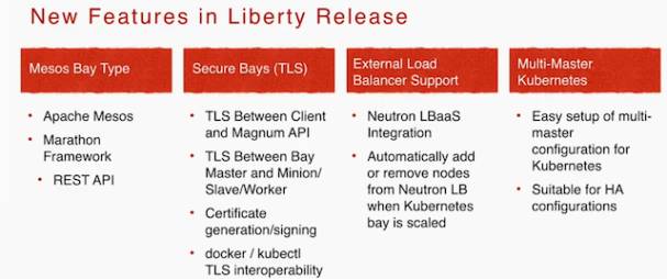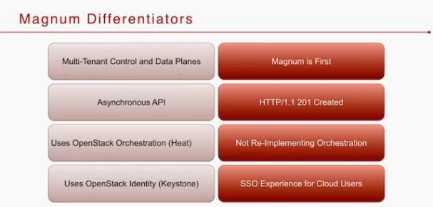 阿里云OpenStack容器项目Magnum的解析 编者的话: 我们今天来看看被寄予厚望的OpenStack容器项目的发展走向。Magnum项目的PTL Adrian Otto将为我们介绍Magnum的工作方式,以及它到底能够帮助我们解决哪些问题。 到现在我们似乎都难以平复对容器这一当前即是老技术又是新技术的兴奋之情。在OpenStack东京峰会上,我们从Rackspace杰出架构师Adrian Otto那里获得了一些关于Magnum 项目的内部消息。Otto为我们介绍了OpenStack的容器即服务项目能够真正为我们解决的问题。 超大型项目 作为Magnum项目的PTL,Otto在多个大型会议中介绍过这个OpenStack的容器项目。东京峰会上,Otto重新升级了Magnum项目的相关数据,具体如下: Otto说:“这表明我们正在评估代码。在提交给上游部门之前,我们正在努力完善代码,不过我们并没有对这一代码做出过多的修改。我们只做了很少的修改就能够让它们变得更好。这些代码正在被人们所接受,而且这一接受速度并不慢。” Magnum的愿景 Magnum过去在OpenStack中被作为一级资源容器。“由于我们已经实现了这一功能,因此这种用途已经过时了。如今,Magnum的用途是将最好的基础设施软件与最好的容器软件整合在一起。我希望所有的人都认识到,容器软件是无法解决我们的问题的。”Otto说。 Magnum能解决什么? Otto表示,当尝试在容器上运行应用时出现的大多数问题都是基础设施问题。这些问题包括:“我如何与我们的网络连接在一起?”,“我利用自己的存储能够做哪些工作?”,“我的地址来自哪里?”,“这些事情是如何联系在一起的?”,“我如何编排它们?如何扩展它们?”等等。 容器软件能够在应用层提供帮助,帮助打包和分发,但是它们并不能解决基础设施层面的所有问题。他补充说:“Magnum正在尝试整合一些解决方案,以解决所有的这些问题。” 反驳争议 Otto表示,“关于容器是什么”还存在着许多争议。如果有人认为容器像虚拟机一样,只是体积更小、速度更快,那么我们只需要做这一件事,那就是反驳他们。 他说:“如果他们这么说,那么我们可以据理反驳。容器与那些运行在主机上的程序密切相关。我们可以关闭它们,启动它们,设置它们的环境变量,绑定文件系统卷,将终端与它们连接在一起,在它们中运行程序。”将这些功能都添加至OpenStack的计算项目Nova中是不合适的,因此他们决定创建一个带有自己的API的新项目。 Magnum 101 Otto带我们浏览了一些基本要点。其中,首先我们要有OpenStack——计算、网络和存储。 Bay Magnum是一个额外的服务,允许我们创建一个新的实体,即一个名为Bay的新的云资源。Bay中有我们的容器编排引擎(COE)。通过Liberty版本,我们可以运行Docker Swam、Kubernetes和ApacheMesos。 Bay的设计初衷是为用户提供原生工具体验,它通过DockerCLI 或Cube CTL命令挑战集群。 Otto说:“我们能够享受到不同COE自带的功能,不需要Magnum团队再在它们上面创建一些东西才能使用这些功能。我们还可以依靠Magnum创建Bay并扩展这一基础设施,随后我们可以通过原生工具交互和创建容器,以及管理容器。” 容器DIY Magnum还提供了一个创建容器的功能。对此,Otto已经在加拿大温哥华OpenStack峰会上详细介绍过。该功能允许我们在Kubernetes上创建一个端口,不过我们需要选择以原生的方式运行它们。根据我们所选择的Bay,我们可以获得不同的原生API体验。 Pod Pod是一组共同运行在同一个主机上的容器。该服务能够将网络端口与容器连接在一起;Bay是一组Nova实例;Node则与相关的Nova实例一一对应。 Node Node实质上是Nova实例。一个Bay可以是一组Nova实例,因此目前Magnum中的所有Bay至少有三个抽象。 Liberty版本的新增功能 Otto谈及了他喜欢的Magnum功能,例如Mesos Bay Type、SecurityBays (TLS)、外部负载均衡支持,以及Kubernetes的Multi-Master功能等。 未来会怎样?无法抑制的兴奋 Otto 说:“我最为自豪的是来自28个不同机构的101位工程师之间展开的通力协作。我们都感受到了这一新技术为我们指引的方向,这是一件非常值得高兴的事情。”