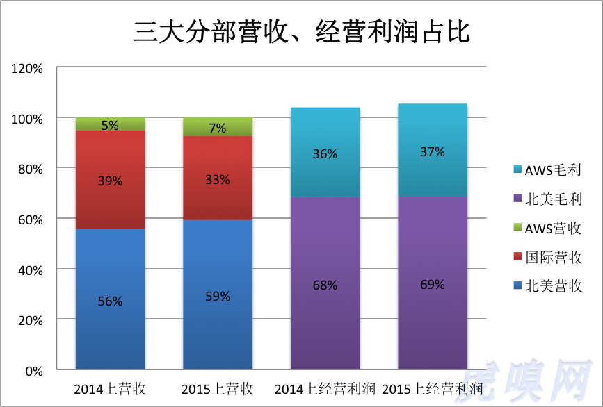 亚马逊估值登顶的背后:云计算露峥嵘,在中国搞不过京东 在迎来20周年生日之际,亚马逊市值达到2466亿美元(按2015年7月24日收盘价计算),这的确是一个值得纪念的时刻。 “不赚钱”的逻辑如何从被质疑到获认可,2015年起财报对三大业务进行重列的意义何在,亚马逊中国与中国电商(特别是京东)竞争的前景会怎样? 不盈利是一种战略 亚马逊将不盈利作为长期的战略。具体来讲就是尽可能地扩大规模,不惜牺牲利润。这就是典型的“top-line growth”战略。过去的十年是亚马逊快速增长的十年,营收的年均复合增长率达29.1%。2014财年,亚马逊营收已达890亿美元。如下图所示: 不过,自2011年以来亚马逊的营收增速开始大幅地回落,并且远远低于阿里、京东的水平。阿里2011〜2014营收平均增速75%。如下图所示: 某些中国的公司喜欢拿亚马逊的不盈利说事儿,动不动就说“亚马逊还亏损呢!”其实,亚马逊只是不追求盈利而已,却从来没有肆无忌惮地亏损。 自2004年以来,亚马逊仅在2012年和2014年出现财年亏损,净亏损分别占当期营收的千分之一和千分之三,而某些中概公司净亏损动辄超过营收!如下图所示: 在不断优化、降低成本的同时亚马逊没有象其它美国公司那样攫取高额利润,而是以相对低的价格向市场提供产品及服务,尽可能地扩张规模。所以亚马逊的毛利润率一直是低于30%的。 自2010年以来,亚马逊在研发和物流方面的投入规模在不断扩大,基本上是可着毛利润花的。于是报表上的“net income”总在微盈和微亏之间徘徊。把经营利润“吃光用尽”的模式曾经倍受质疑,如今已收到贝索斯想要达到的效果:在电商领域一马当先并强有力地冲击着传统零售。在亚马逊的攻势下,百思买、巴诺书店已经回天无力。今天亚马逊的市值超越沃尔玛是历史性的,说明多数投资人终于认同了贝索斯的理念。 亚马逊虽然不追求盈利,甚至主动亏损,但是贝索斯却非常重视现金流,他说“股票价值是未来现金流的现值,而不是未来盈利的现值。我们最终的财务指标,我最想达成的目标就是自由现金流。”(出自2004年致股东的信) 2015年Q1,亚马逊净利润只有3500万美元,经营活动净现金流为4.98亿美元。 而在截止到6月30日的12个月中,亚马逊净亏损1.88亿美元,经营活动产生的净现金流入高达89.8亿美元,期未现金及等价物储备达102.7亿美元。充沛的经营现金流强有力地支持着对外扩张,截止到2015年6月30日亚马逊在过去12个月的投资活动净现金流出为66.3亿美元。 众所周知,编制财务报表的基本原则是权责发生制。即期内实现的收入或应付的费用,不论相关款项是否收到或付出都作为本期的收入和费用处理。贝索斯的观点则更接近收付实现制,收款以落袋为安,付款能拖就拖,许多中国老板也是这样想、这样做的! 重列三大业务的用意:云计算业务成估值功臣 在财报中如何对主营业务进行分类,乃至各项业务的名称都大有学问,对估值会产生直接的影响(乐视网就是此中高手,虎嗅在2014年3月23日文曾进行过分析)。 从2015年Q1开始,亚马逊把主营业务分为北美分部、国际分部和AWS分部进行独立核算。即按照营收与费用匹配的原则,把营收及履约费用、研发及内容费用、行政管理费用分配到这三个分部。 在2015年上半年,北美业务分部营收272亿美元,同比增长25%。同期国际业务分部的营收为153亿美元,同比增幅仅为1%。因此上,北美分部营收在总营收中的份额升到59%(2014年同期为56%)。 首次独立披露的AWS(Amazon Web Services)业务,它被称为亚马逊云计算,就是以Web服务的形式向企业提供IT基础设施服务。在全球扩张的道路上,亚马逊本身就是云计算的重度用户。2006年8月推出AWS之今,亚马逊成为举世瞩目的云计算服务提供商,客户总数超过100万(分布在190个国家和地区),2015年前六个月营收33.9亿美元,占比7%。 与中国投资人不同的是,美国人在二级市场不做VC,说白了就是不为概念估值。而在A股市场人人都是VC,认为自己能看到标的公司五年、十年以后的蓝图。所以,在美国即使是苹果也得拿销售了多少iPhone、多少iMac,拿实实在在营收、净利润说事儿。A股上市公司开个媒体沟通会、放个PPT,甚至改名为“匹凸匹”都能让股价翻番。应当说美国投资人的保守是有道理的,可以大大降低被忽悠的风险。 亚马逊单独披露云计算(AWS)的营收,尽管占比只有7%,但资本市场对这块业务的认知度大幅提高。AWS信息的披露,为亚马逊市值突破2400亿美元,历史性地超越沃尔玛做出极大的贡献。最近讨论亚马逊估值的文章,把云计算业务视为“功臣”。 2015年上前六个月,亚马逊三个分部的经营利润(不计股权激励)合计为17.8亿美元(同比增加96%),其中69%来自北美分部、37%业自AWS分部(两者合计超过100%是因为国际分部亏损9500万美元)。如下图所示: 亚马逊在北美以外的多个国家成为最大的电商,如英国、法国、日本、印度等。但在“好啃的骨头啃光”之后,国际业务遇到了瓶颈。2015年前六个月,国际分部营收的同比增幅仅为1%,经营亏损却增加171%。这种情况下,只能对AWS分部寄予厚望了。 不客气地说,亚马逊营收增长并不理想,AWS短期内难当大任,接近2500亿美元的市值恐怕会成为阶段性“顶峰”。 京东与亚马逊(中国):青出于蓝而胜于蓝 亚马逊在进入中国后,沿用了它在美国的成功经验(比如自建现代化物流体系),这或许是亚马逊在中国存活下来的重