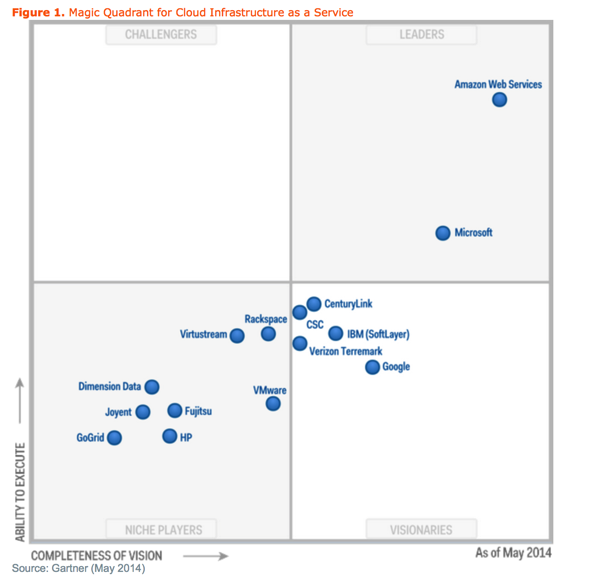 埃里森说甲骨文将向亚马逊发起云价格战 甲骨文的CTO Larry Ellison目前正在进行一项微软未能完成的任务:以低价打击亚马逊云服务。据了解,甲骨文云端平台 (Oracle Cloud Platform)将要扩充服务内容,让开发者、IT 人员、商务人员以及分析师们可以更轻松地建立、扩充、并整合云端应用程序。本次甲骨文云端平台一共新增 24 项新的云端服务,进化全球最全面的SaaS、PaaS 与 IaaS的云端产品组合。 不过在最新Gartner Cloud IaaS报告中,公有云的部分,好像根本没有甲骨文的身影。 上一条: 关于活动一些总结和私有云建设的一些思考 下一条: 阿里云香港机房瘫痪12小时的原因