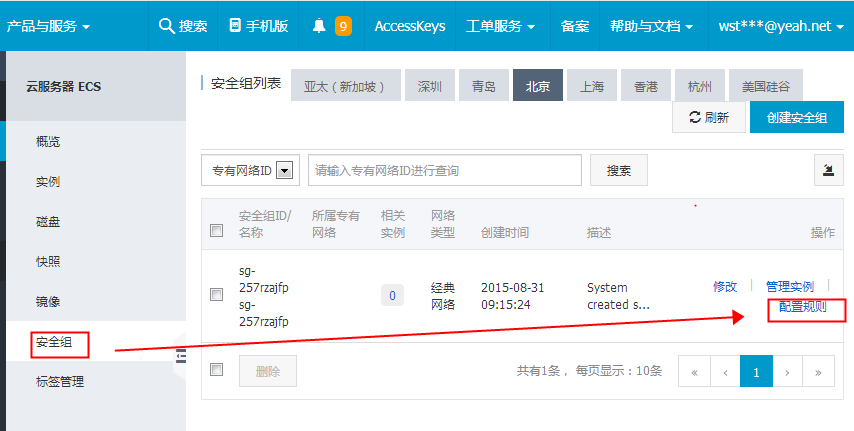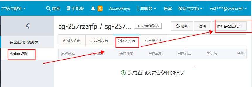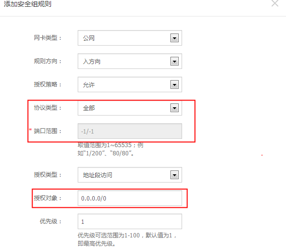 如何正确配置ECS安全组规则 问题描述: ECS 服务器无法ping通,排查防火墙、网卡IP配置无误,回滚系统后仍然无法ping通。 分析解决: 排查后发现,由于该ECS实例安全组默认的公网规则被删除导致,重配公网入口安全组规则即可。 可根据以下步骤配置: 1. 登录阿里云ECS控制台,点击【安全组】--【配置规则】。 2. 选择【公网入方向】--【添加安全组规则】。 3. 配置安全组规则,默认规则的参考信息如下: 网卡类型: 公网 规则方向: 入方向 授权策略: 允许 协议类型: 全部 端口范围: 默认 授权对象: 0.0.0.0/0 优 先 级: 1 4. 配置完毕点击【确定】,再次进行ping测试,恢复访问。 如问题还未解决,请联系售后技术支持。 上一条: 如何查询与定位IP地址